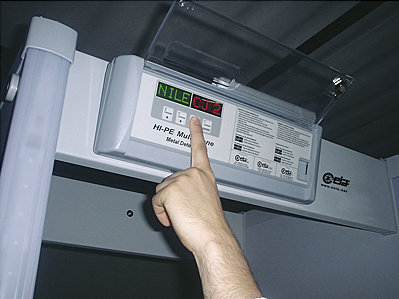 The HI-PE Multi-Zone is a high performance walk-through Metal Detector which exceeds all International Security Standards. A “height on person” display actually indicates, by means of illuminated LED’s, the position of the weapon on the person. Three operating modes are available: Floating (standard), the location zones are not fixed, as in the case of metal detectors with multiple receiver-transmitter coils, but are variable and continuous so as to achieve optimum resolution; 8-Zones and 4-Zones, the alarm threshold can be adjusted individually for each zone.